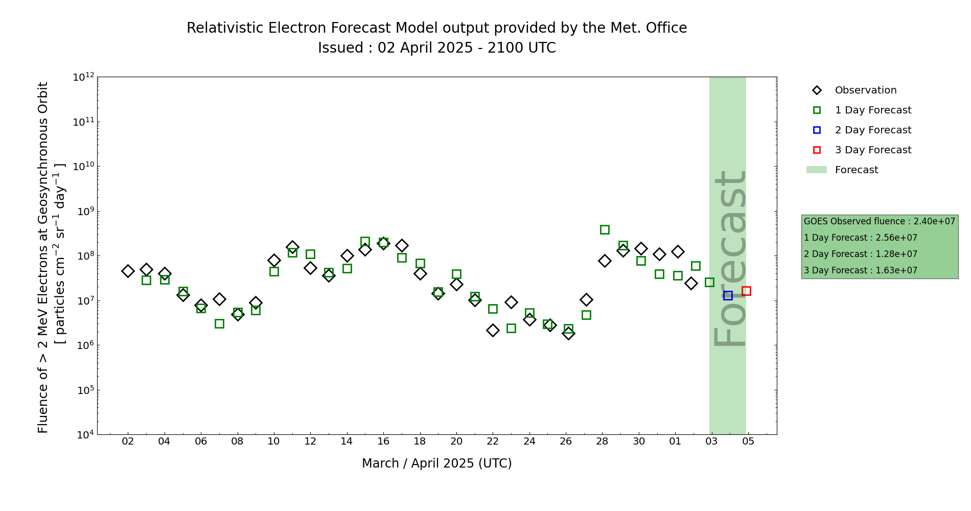 | High Energy Electron Event Forecast | ||