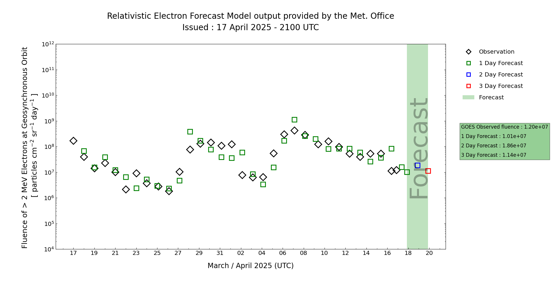 | High Energy Electron Event Forecast | ||
