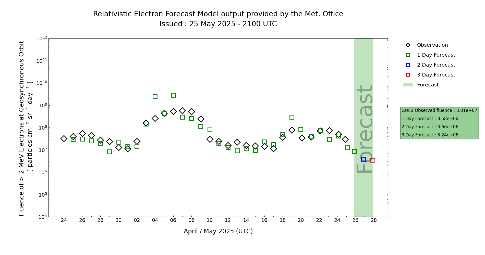 | High Energy Electron Event Forecast | ||
