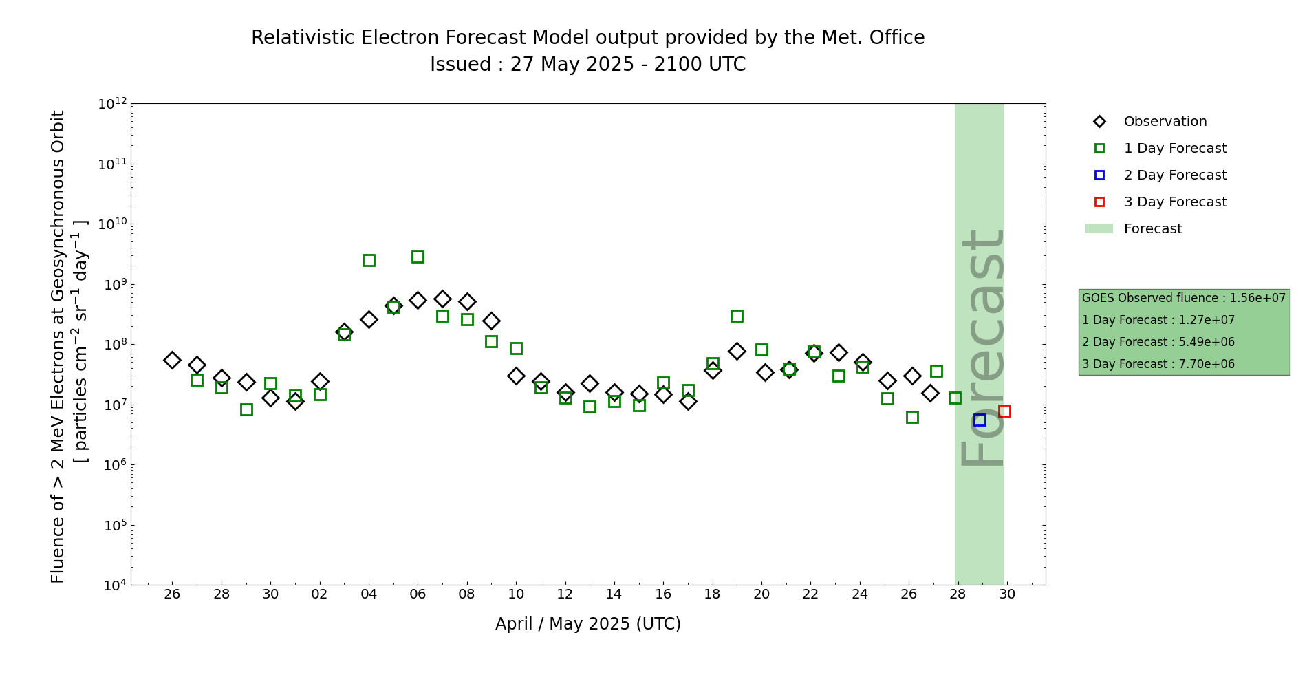 | High Energy Electron Event Forecast | ||