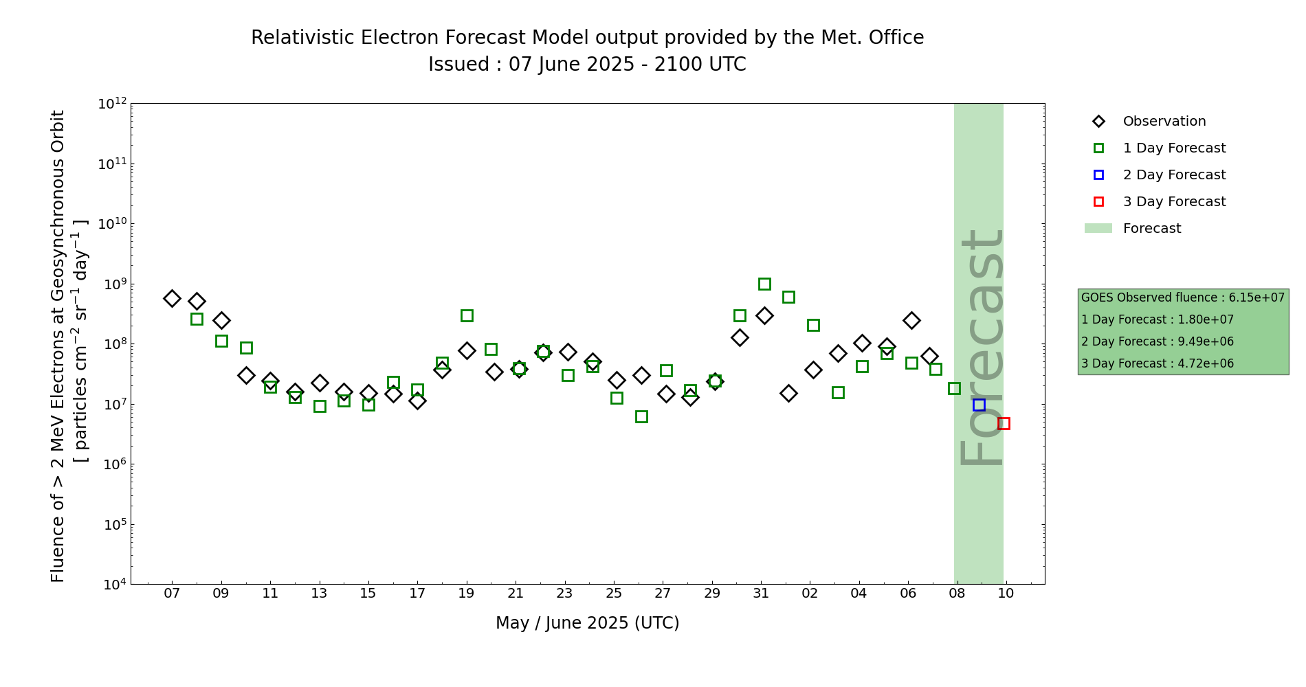 | High Energy Electron Event Forecast | ||