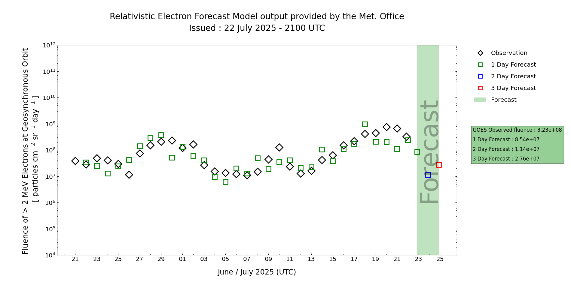 | High Energy Electron Event Forecast | ||
