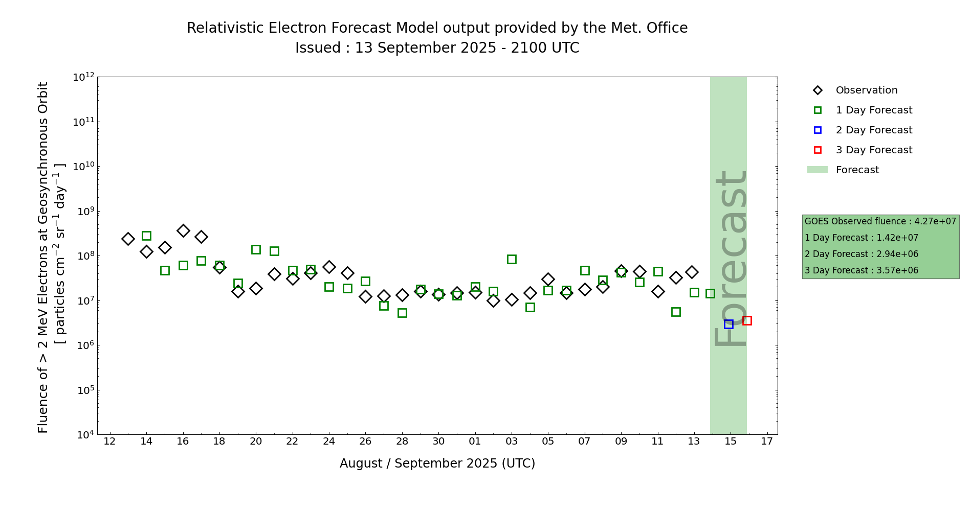| High Energy Electron Event Forecast | ||