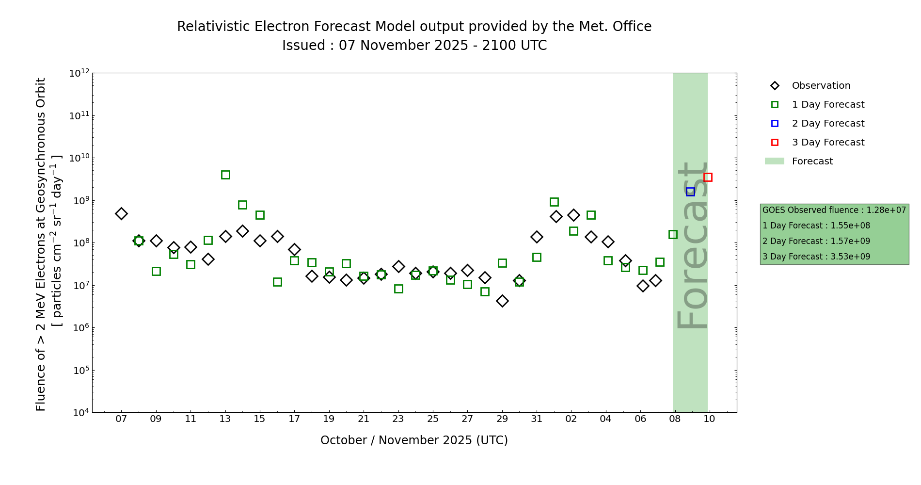 The associated 24 hour fluence is currently below the Active (1e8 level) and is not expected to rise above unless geomagnetic activity eases and prolonged periods of High flux are observed. This is supported by MOSWOC REFM.
