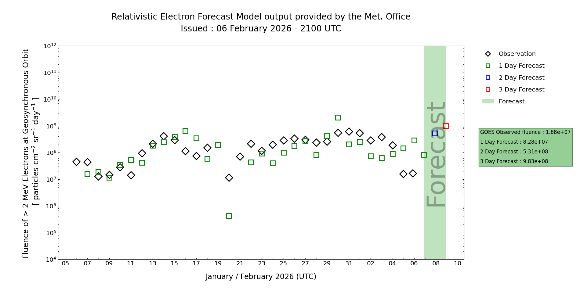 The diurnal oscillation in high energy electron flux has been High for much of the past week, however geomagnetic activity within the last 24 hours has resulted in a recent decline at GEO which may yet result in fluence falling below the 24-hour integrated Active threshold inside the current UTC day.