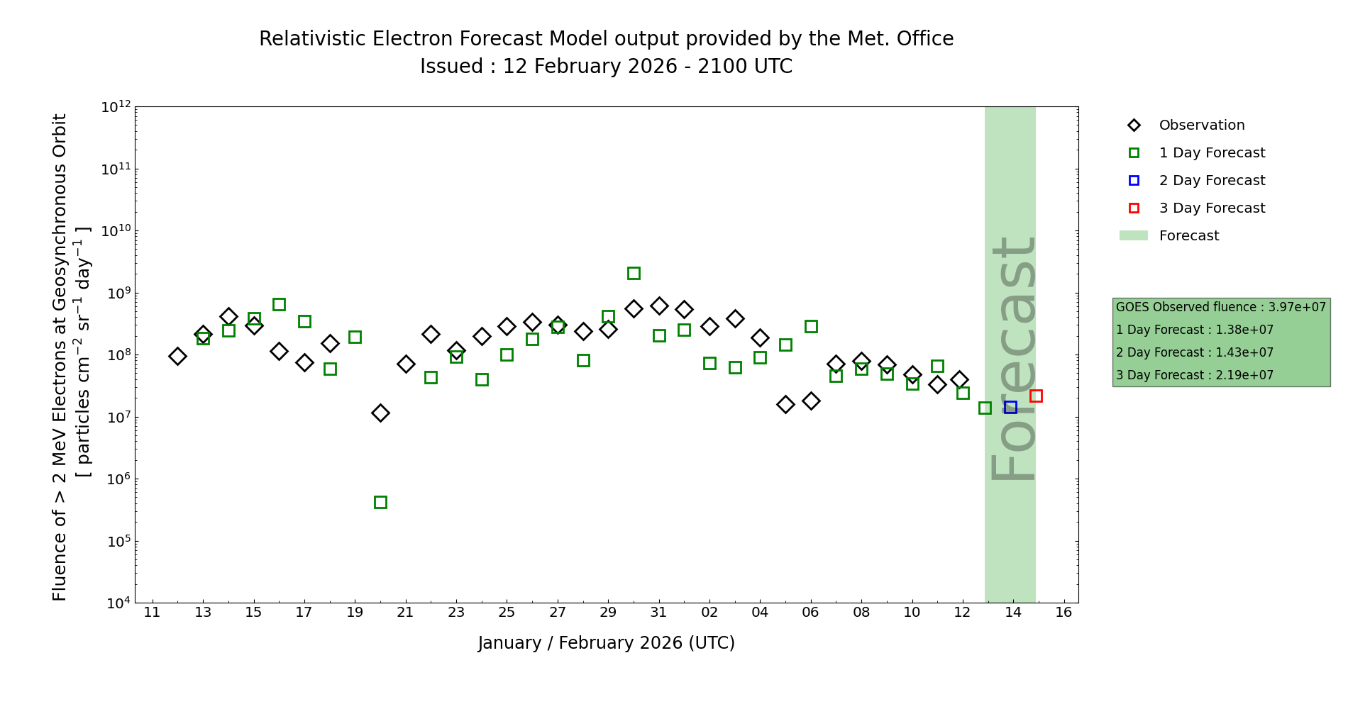 The associated 24 hour fluence is expected to persist below the Active level, although perhaps rising a little during the period. The latest MOSWOC REFM is now also forecasting for fluence to remain below the Active level through the next three days, which is considered reasonable guidance.